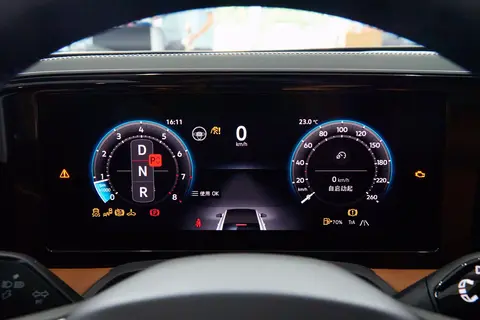 全液晶仪表盘显示的信息特别丰富,除了常规的车速、转速、油耗这些信息外,还能显示导航地图、驾驶辅助系统状态等。而且界面设计很简洁,有多种主题模式可以切换,比如运动模式下,仪表盘的颜色会变成红色,指针样式也更具动感;标准模式下则以简洁清晰为主,开车的时候看一眼就能快速获取信息,完全不会觉得眼花缭乱。在驾驶过程中,当开启导航后,仪表盘上会同步显示下一个路口的转向提示,不需要频繁扭头看中控屏,大大提高了驾驶安全性。