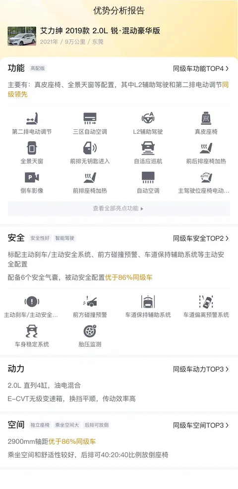 了解完车况信息,咱们来看看这辆二手艾力绅 2019款 2.0L 锐·混动豪华版在配置、动力、空间部分的表现如何。