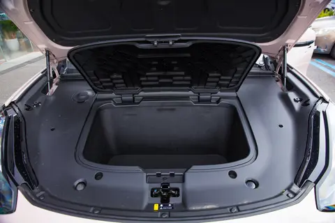 小鹏 G6 的后排虽支持靠背角度调节,但调节范围相对有限,更适合常规坐姿。不过其后备箱表现同样出色,常规容积 647L,放倒后排后可达 1752L,空间平整度良好,铺上充气床垫便可作为露营时的临时床铺。对于喜欢户外露营的用户来说,后备箱内设置的 12V 电源接口和挂钩,方便连接车载冰箱储存食物,悬挂烹饪工具等物品,满足户外露营等多样化使用场景需求。在野外露营时,通过 12V 电源接口为车载冰箱供电,能随时享用新鲜的食物和冷饮;挂钩则可以悬挂露营灯、炊具等,让露营生活更加便捷。