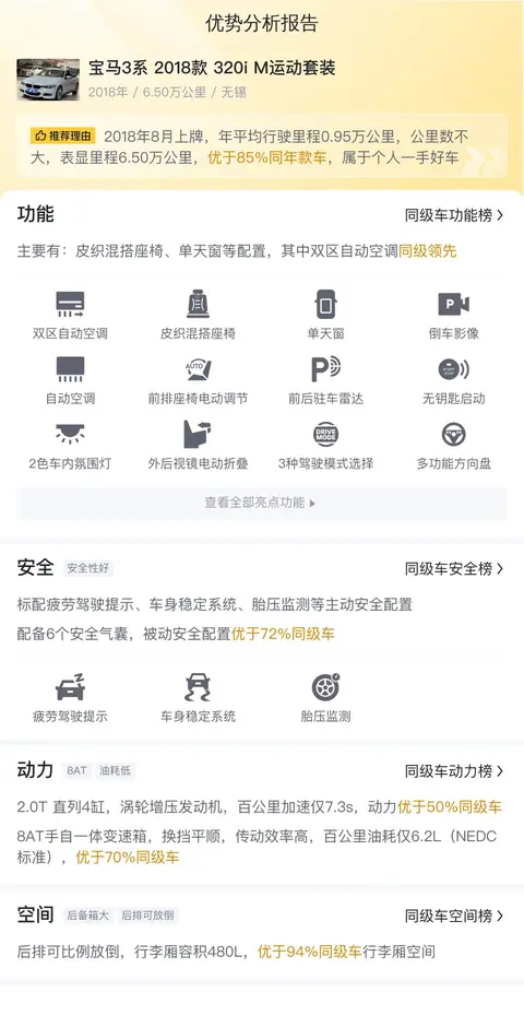 总的来说,这辆宝马3系2018款320i M运动套装是一款性价比高的车型,它能够为您提供优质的驾驶体验和舒适的空间享受。如果您正在寻找一辆兼具豪华与实用的二手车,那么它绝对是一个不错的选择。