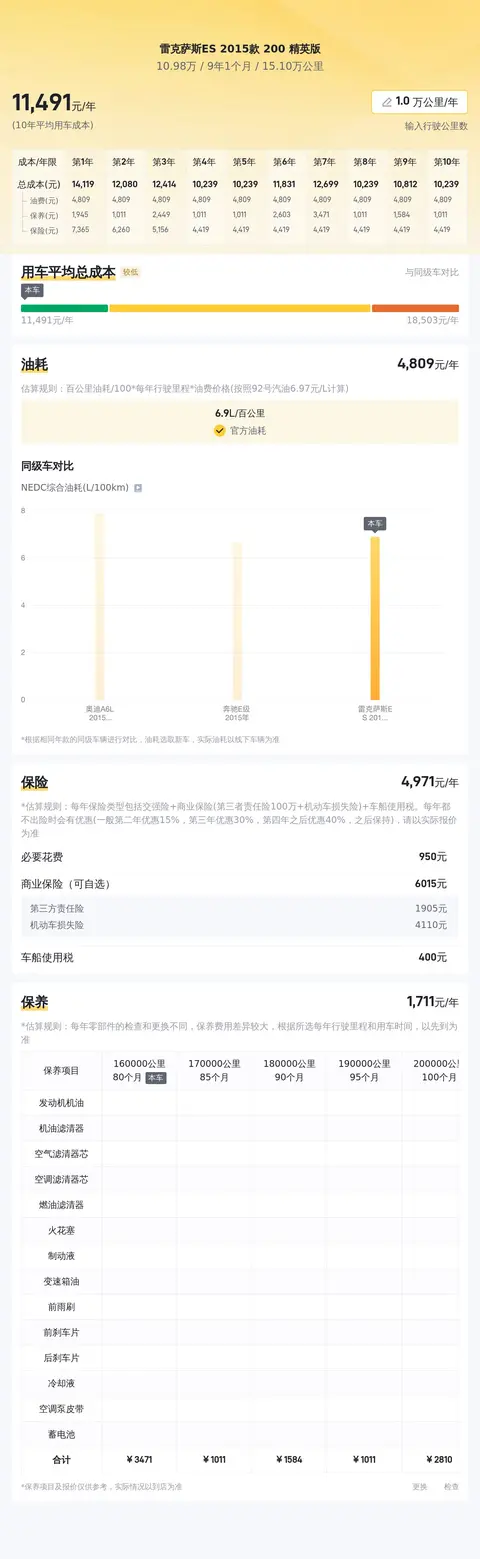 动力方面,这辆雷克萨斯ES搭载的2.0L直列4缸发动机和6AT手自一体变速箱表现平稳顺滑,虽然百公里加速时间为11.3秒,但日常驾驶完全够用。雷克萨斯ES 2015款 200 精英版的NEDC综合油耗仅为6.9L/100km,优于57%的同级车,无论是燃油经济性还是动力表现,都能满足大多数用户的日常需求。