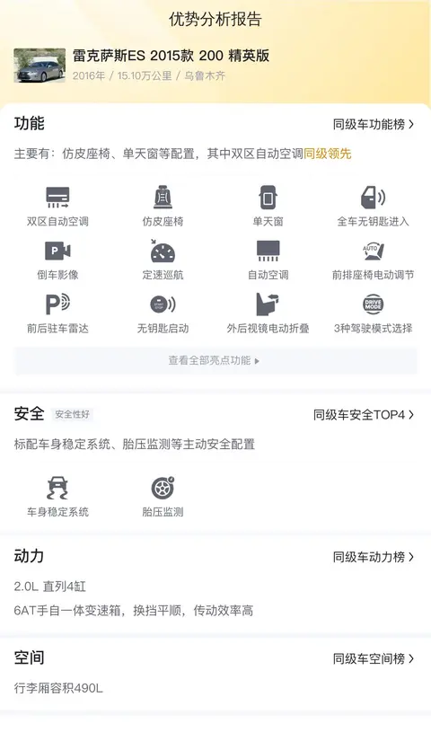 综上所述的新车含税价、用车成本、市场行情、优势分析、同款比价等数据仅供参考。在配置部分,因为二手车非标品,车辆可能会存在配置改装的情况,具体车况信息需要线下结合车辆实际情况进行综合参考。