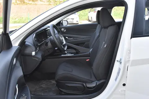 坐进车里,伊兰特的内饰给人感觉很有科技氛围。一抬头就是两块 10.25 英寸的连屏,左边是全液晶仪表盘,右边是中控屏,显示效果很清晰,操作也流畅。比如导航的时候,地图可以直接投屏到仪表盘上,不用扭头看中控,这点对新手很友好。中控屏里的智能系统功能挺全,语音控制、在线导航、音乐播放这些都有,而且支持苹果 CarPlay 和百度 CarLife,手机党用起来方便。内饰用料上,中控台和门板上用了不少软质材料,摸起来不硬,座椅的包裹性也不错,主驾还有腰部支撑调节,长时间开车腰不会太累。晚上开车时,车内的 64 色氛围灯还能跟着音乐节奏变颜色,有点小浪漫。