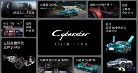 总结:此次 2026 款 MG5 和 MG Cyberster 的上市,展现了 MG 品牌在产品更新迭代上的用心。2026 款 MG5 凭借新增的外观颜色与内饰配色、升级的配置以及富有竞争力的价格,在 10 万以内轿车市场中,以其出色的动力性能和丰富的配置,有望吸引追求性价比与运动感的年轻消费者群体。而 MG Cyberster 2026 款通过在外观颜色选择、内饰配置优化以及动力续航提升等多方面的改进,进一步巩固了其在纯电跑车领域的地位,为消费者带来了更具吸引力的纯电跑车选择,无论是追求驾驶乐趣还是个性化外观,都能在这款车上得到满足。两款新车的上市,不仅丰富了 MG 品牌的产品矩阵,也为消费者在不同细分市场提供了更优质、更具特色的购车选择 。