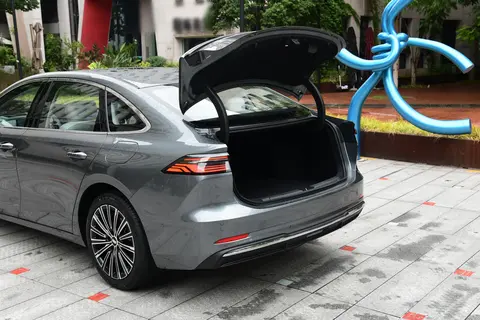 车身参数方面,该车长宽高分别为4918/1905/1495mm,轴距达2845mm,尺寸数据优于同级别竞品比亚迪秦L(轴距2790mm)。风阻系数优化至0.198Cd,传统门把手设计兼顾实用性与空气动力学表现。内饰配备15.4英寸悬浮中控屏与10.25英寸全液晶仪表,电子怀挡设计提升操作便利性。