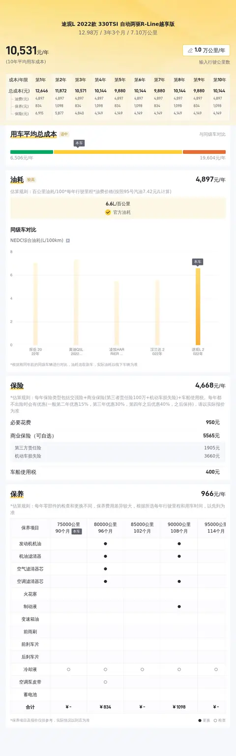 综上所述的新车含税价、用车成本、市场行情、优势分析、同款比价等数据仅供参考。在配置部分,因为二手车非标品,车辆可能会存在配置改装的情况,具体车况信息需要线下结合车辆实际情况进行综合参考。