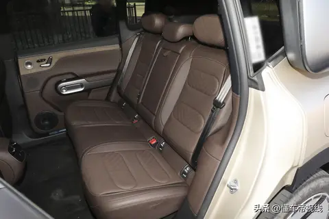 smart精灵#5座椅采用皮革包覆,实拍车型为棕色搭配,主副驾均配备设置在车门内衬位置的电动座椅调节功能键,设计风格类似于奔驰车型。此外,smart精灵#5后排座椅支持分割放倒,提供后排空调出风口、USB Type-C充电接口等。