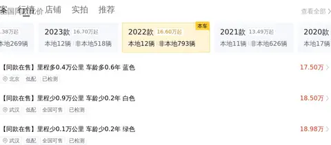 接下来,我们来看看这辆车的售价。目前,它的售价为22万元,相比新车含税价优惠了16.36万元,相当于开了3年多便宜了一半,而且里程也只多了1.7万公里,车龄多了0.1年,过户次数多了1.7次。从投资的角度来看,这款车的保值率相当不错,预计两年后仍能卖出17.01万元。当然,这个价格还要看车子的状态而定。