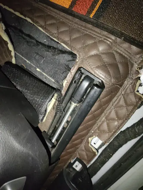 副驾座椅滑轨,拆卸痕迹