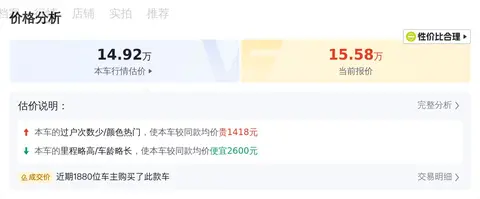 接下来我们聊聊大家可能都比较关心的价格问题。懂车帝通过大数据分析,对该车进行了市场行情的调研和评估。目前,这款车的二手车市场价格大致在15.02万到18.66万之间。当然,具体的售价会受到车辆状况等因素的影响。至于我们的卖家,他给出的价格是15.58万。这个价格在市场中算是比较亲民的,毕竟不是新鲜的首发车,但车的成色还是不错的。