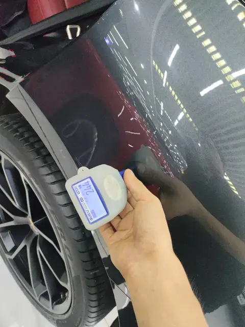 在外观检测部分,经过对汽车主要覆盖件检测,有1项问题需注意,具体是喷漆修复:左后翼子板,这个问题很可能是因为停车技术不到位导致的剐蹭,没什么好多说的,直接上图。
