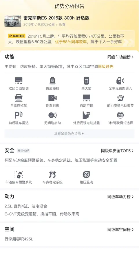 综上所述,这辆二手雷克萨斯ES300h舒适版以其低廉的价格、较低的里程数、优雅的外观和豪华的内饰,再加上先进的油电混合动力系统,成为了二手车市场中的一个不可多得的选择。它的出现,仿佛是对过去奢华的致敬,也是对未来节能生活的期许。在选择二手车时,它或许能成为您心中的那辆“理想之车”。