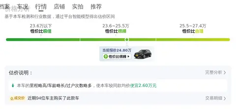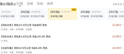 车源地和上牌地都在天津。2019年01月首次上牌,在此期间过户2次。新车含税价为76.65万,现在的二手车报价是24.8万,相当于开6年多便宜了51.85万。