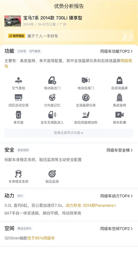 综上所述的新车含税价、用车成本、市场行情、优势分析、同款比价等数据仅供参考。在配置部分,因为二手车非标品,车辆可能会存在配置改装的情况,具体车况信息需要线下结合车辆实际情况进行综合参考。