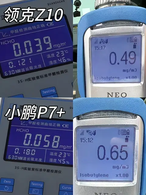 车内健康安全方面,领克Z10通过严格选材展现了对用户健康的重视。地板填充物采用原生发泡材质,甲醛释放量检测结果为0.065毫克/立方米,座椅与顶棚的甲醛释放量分别为0.030和0.037毫克/立方米,车内空气TVOC释放量控制在0.49毫克/立方米。而小鹏P7+在健康安全方面表现中规中矩,地板甲醛释放量达到0.126毫克/立方米,虽未超标但数值较高,座椅与顶棚的甲醛释放量分别为0.017和0.026毫克/立方米,车内空气TVOC释放量为0.65毫克/立方米。对于敏感人群,建议购车后进行充分通风或加装净化设备。
