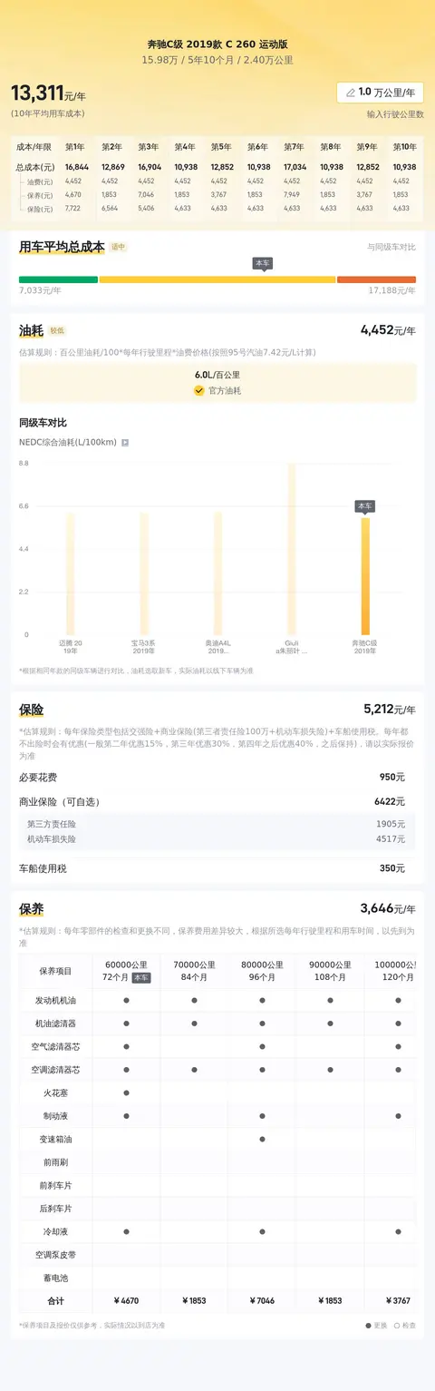 另外,根据估算,这辆车年均综合用车成本大概在每年1.3万元左右。但实际费用根据车主的使用习惯而有所不同。