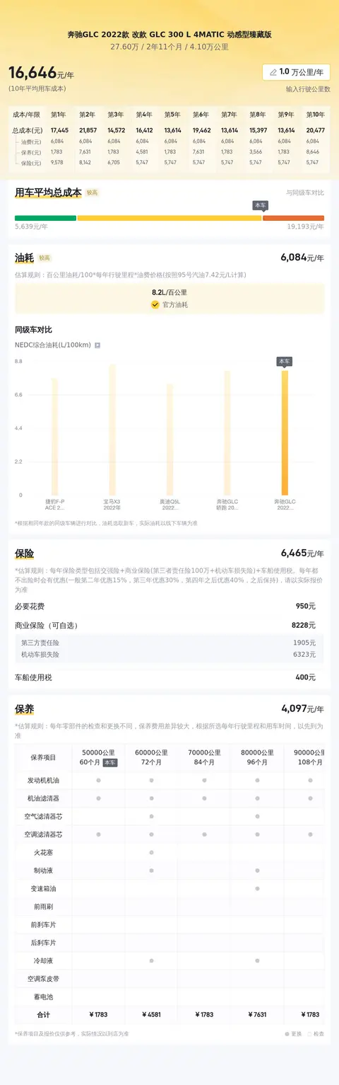 根据估算,这款车的10年平均用车成本约为17,388元/年,这在同级别车型中处于相对合理的范围之内。具体的实际费用开销会根据车主的实际使用情况以及当地的物价水平等因素有所不同。