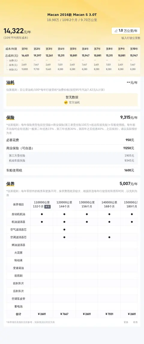 关于这款车的用车成本,我们将通过同级别车型的平均能耗和保养费用等数据,为您提供一个大致的用车成本范围,帮助您更加全面地了解这款车的使用成本是否合理。