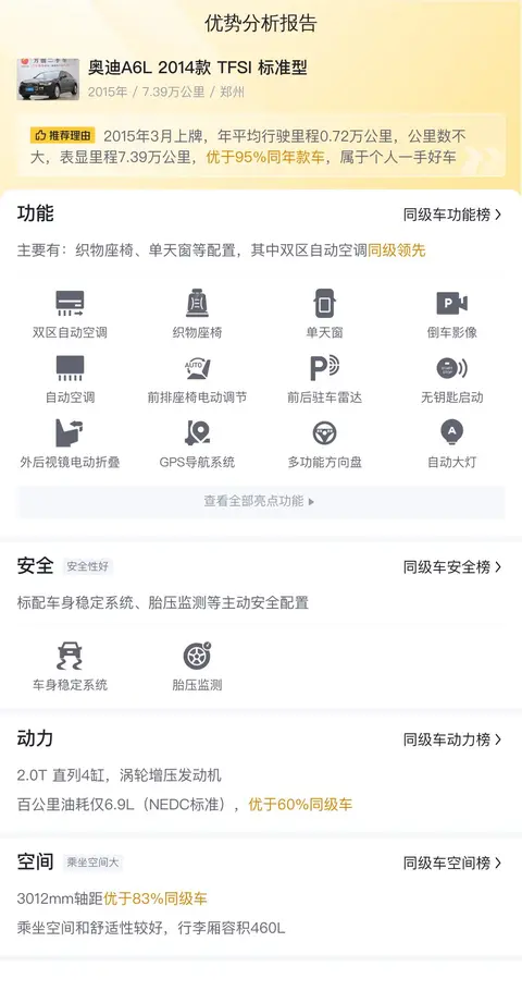 综上所述的新车含税价、用车成本、市场行情、优势分析、同款比价等数据仅供参考。在配置部分,因为二手车非标品,车辆可能会存在配置改装的情况,具体车况信息需要线下结合车辆实际情况进行综合参考。