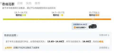 综上所述的新车含税价、用车成本、市场行情、优势分析、同款比价等数据仅供参考。在配置部分,因为二手车非标品,车辆可能会存在配置改装的情况,具体车况信息需要线下结合车辆实际情况进行综合参考。
