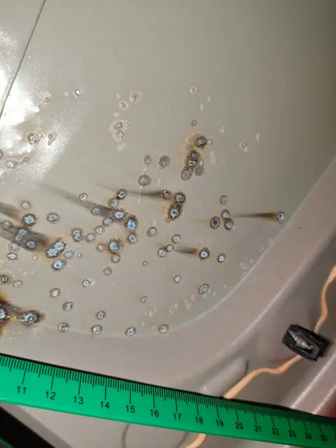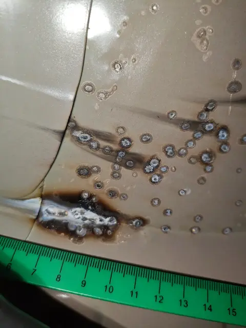 在外观检测部分,这辆车的表现一般,在左后翼子板和右后翼子板处都有喷漆修复的痕迹,修复后不影响车辆的美观跟正常使用。