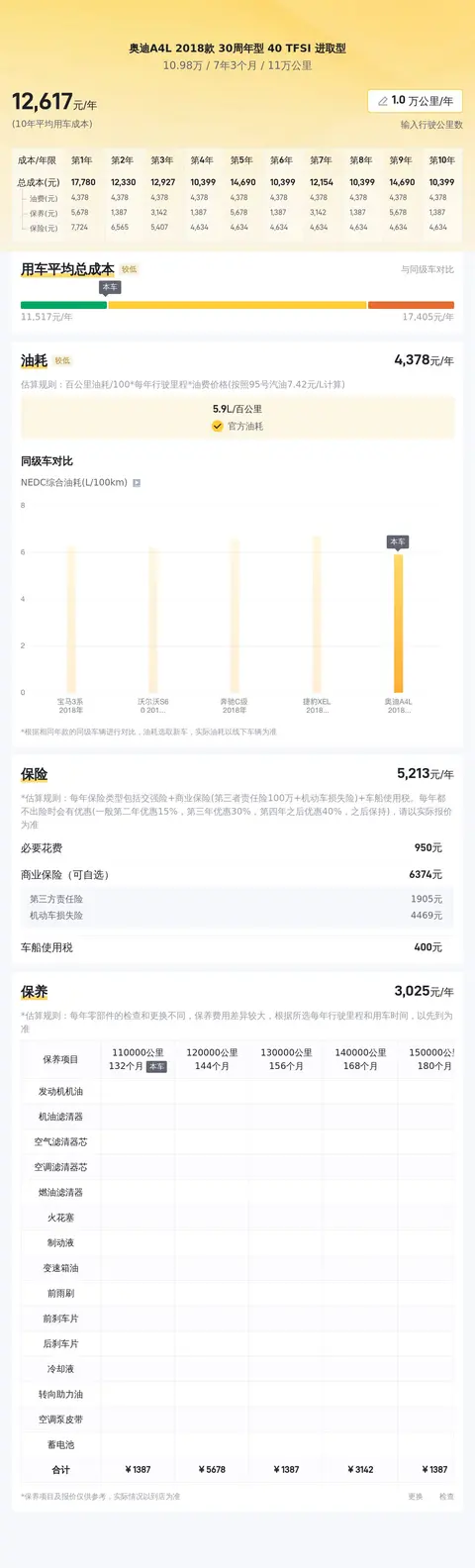 从用车成本来看,这辆车的平均用车成本是12678元/年,与同级别车相比,处于适中的区间内。