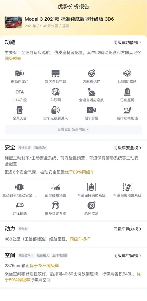 在竞品比较方面,这辆二手 Model 3 凭借其出色的性能、合理的用车成本以及丰富的黑科技配置,在众多电动车中脱颖而出。无论是与同级别的新能源车型相比,还是与传统的燃油车相比较,这辆二手 Model 3 都展现出了其独特的优势和竞争力。