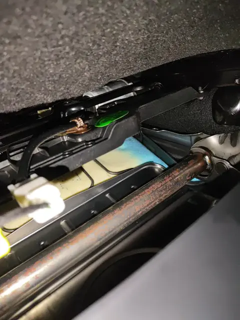 但在泡水检测中,发现主驾座椅滑轨处有轻微的锈蚀现象,但并非泡水导致,应该是长时间通风不良造成的表面锈蚀,不影响车辆的正常使用。