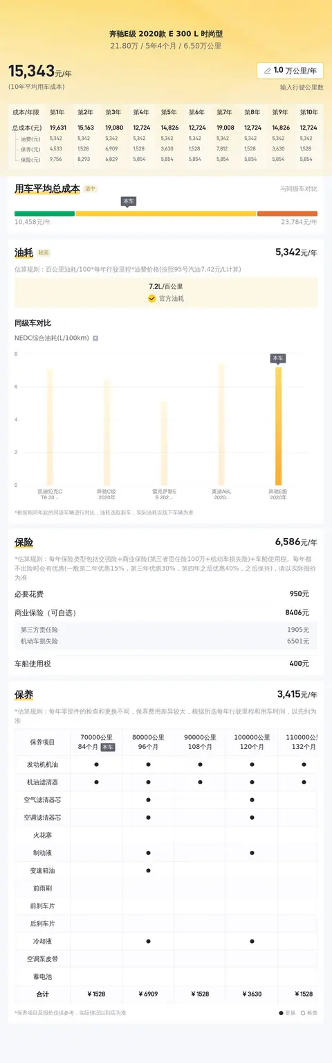 关于用车成本,我们在文章中已经进行了详细的描述,一年的保险加保养费用大约在1.2万元左右,而燃油消耗根据官方数据,每年大约在5800元左右,这些都可供您参考。