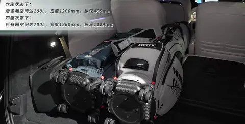 来到第三排,首先腿部空间也足够阔绰,坐起来丝毫不局促。并且,座椅加热、靠背电动调节、中央扶手、隐私车窗、扬声器通通安排上了,豪华舒适感做得非常足。三排之后,仰望U8L鼎世版竟然还给到了一个非常大的后备箱,6座状态能放2个高尔夫球包,4座状态能放下足足4个,而且“天地门”的设计不仅方便取物,也能满足户外钓鱼等一些场景需求。