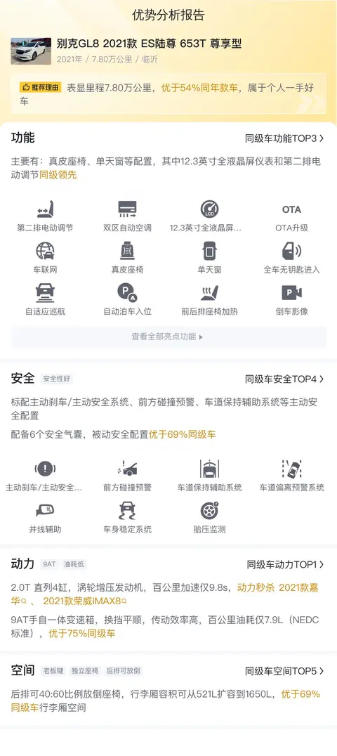在不考虑其他因素的情况下,单纯从市场行情和用车成本角度出发,这辆车是否值得购买呢?我们的建议是:如果您正在寻找一款性能出色、舒适度高、性价比合理的MPV车型,那么别克GL8 2021款 ES陆尊 653T 尊享型绝对是一个不错的选择。它不仅有着出色的性能和舒适的乘坐体验,而且在价格上也相对较为合理。同时,作为一款二手车,它还具有较高的保值率和较低的购车成本。但是需要注意的是,在购买二手车时一定要选择正规的渠道和商家进行交易,并且要对车辆的车况进行全面的了解和检查。只有这样才能够确保您购买到的是一辆真正优质、可靠的车辆。