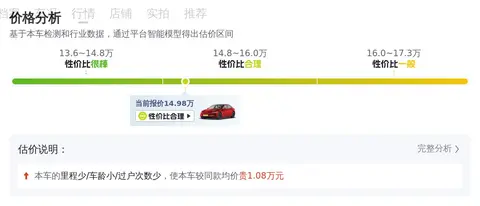 在二手车市场中,这辆Model 3的售价具有明显的竞争优势。根据懂车帝的数据,在类似的车型中,其售价区间通常在14.98万元至18.51万元之间。而目前这辆车的报价为14.98万元,不仅处于市场区间的最低端,而且相较于新车指导价,节省了8.21万元。这一价格定位,使得这辆Model 3在同级别二手车中显得尤为吸引人,对于追求性价比的购车者来说,无疑是一个难以抗拒的选择。