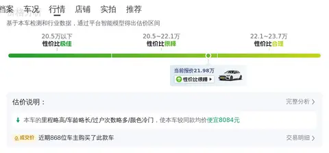 综上所述的新车含税价、用车成本、市场行情、优势分析、同款比价等数据仅供参考。在配置部分,因为二手车非标品,车辆可能会存在配置改装的情况,具体车况信息需要线下结合车辆实际情况进行综合参考。