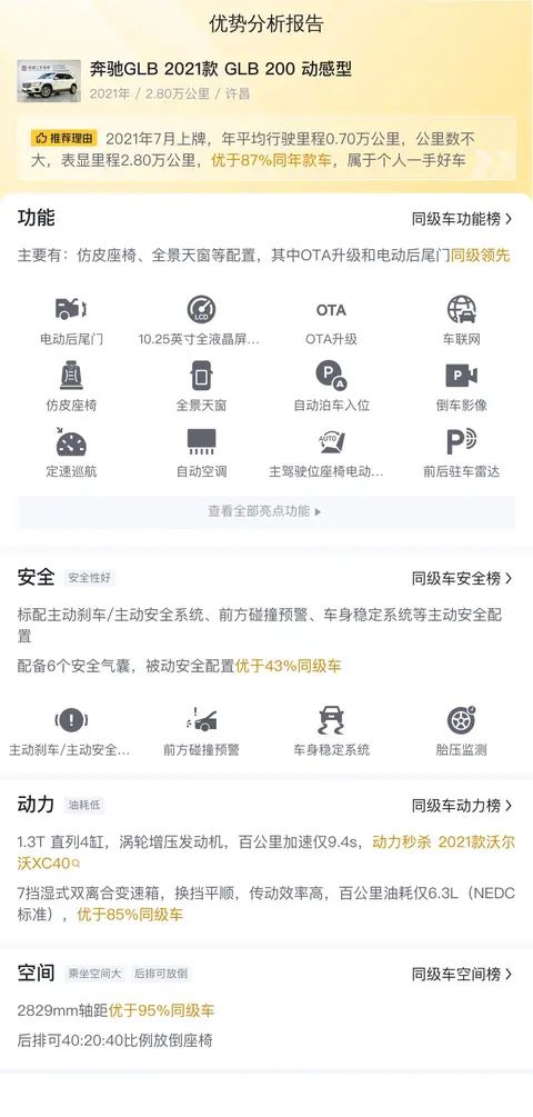 奔驰GLB 2021款 GLB 200 动感型目前的二手价格为15.88万,从各方面来看都还不错,尤其是奔驰的豪华内饰确实是很吸引人,不过它的动力表现一般,而且用车成本较高,购买前还是需要慎重考虑。