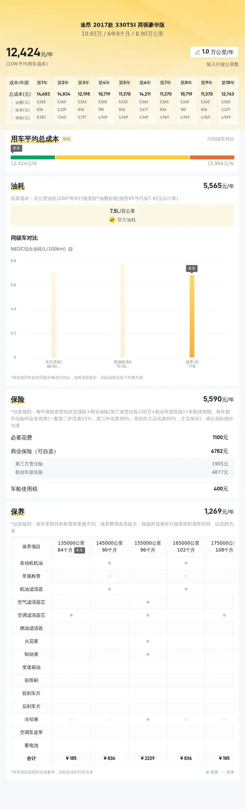 关于市场行情,当前这款车的二手车价位大约在10.71至13.37万元之间,而本车的报价为10.65万元,不仅低于市场行情的均价,而且本车系为保定热销车榜第4名,热度较高。在价格方面,本车有很大的优势。另外,根据估算,这辆车的年均综合用车成本大概在每年1.2万元左右。当然,这个跟车主的用车方式和用车强度也有直接关系。