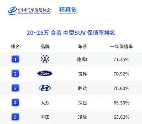 2025年7月,中国汽车流通协会和精真估联合发布了《2025上半年中国汽车保值率研究报告》,上汽大众油电混全面开花,多款明星车型上榜。其中,途昂、ID.3、帕萨特插电混动分别拿下了主流合资中大型SUV、合资纯电动紧凑型车、插电混动中型车三年保值率排名第一,途观L在20-25万合资中型SUV一年保值率中排名第一,印证了上汽大众 “开不亏”的硬核产品实力。