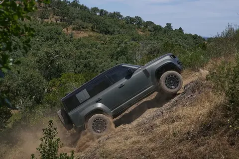 路虎卫士OCTA基于在售110版本打造,高速更稳健,配22英寸锻造铝合金轮毂和全季节轮胎时,极速可达249km/h(可选20英寸轮圈和全地形轮胎)。刹车部分,该车采用Brembo六活塞卡钳的400mm前制动盘,转向重新设计后也更灵活。