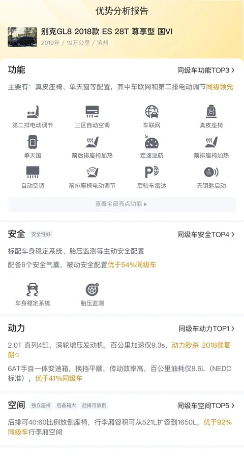 在用车成本方面,根据懂车帝的大数据分析,别克GL8 2018款 ES 28T 尊享型 国VI的10年平均用车成本约为16180元/年,而同级别的其他车型的最低用车成本为13660元/年,最高为17988元/年,所以本车的用车成本处于适中的水平。