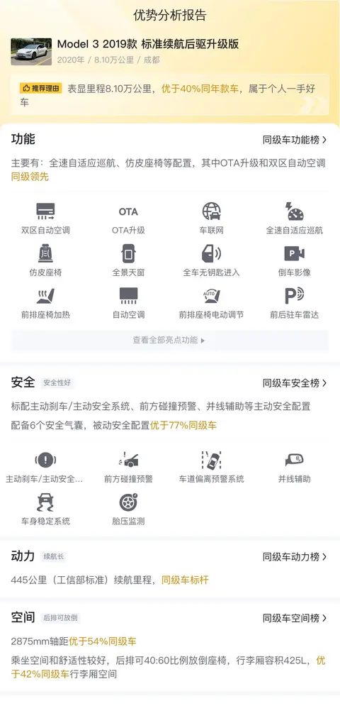 总结:在日益严峻的环保压力和能源危机面前,电动汽车成为了许多消费者的首选。而作为这一领域的佼佼者,特斯拉Model 3无疑是一个值得考虑的选择。它不仅拥有出色的性能和配置,还具备较高的性价比和较低的用车成本。如果您正在寻找一款高品质、环保节能的电动汽车,那么这辆二手Model 3无疑是一个不错的选择。目前这辆二手Model 3的车况良好、价格合理、用车成本经济,而且还能享受到特斯拉带来的科技感和驾驶乐趣。赶紧行动起来吧!让这辆二手Model 3成为您绿色出行的得力伙伴吧!