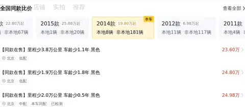 奔驰S级 2014款 S 400 L 尊贵型,新车含税价为136.01万,现在的二手车报价是21.8万,2013年12月首次上牌,在此期间0过户。