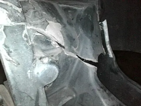 经检测,这辆车在事故检测中,水箱框架有变形,右C柱封边有划痕,具体瑕疵实拍图如下。