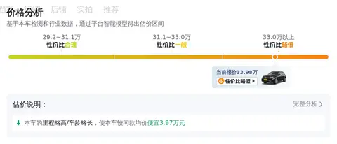 买二手车,行情看很重要。这辆奔驰GLE市场行情估价在30.15万到36.51万之间,报价33.98万,属于正常水平,但性价比上没有明显优势。不过,车况好的话,这个价格也合理。