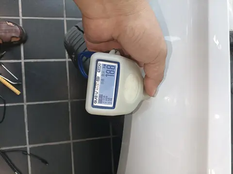 该车在左前翼子板处有过喷漆痕迹,可能之前车辆在这个部位产生了划伤,车主进行了喷漆修复处理。