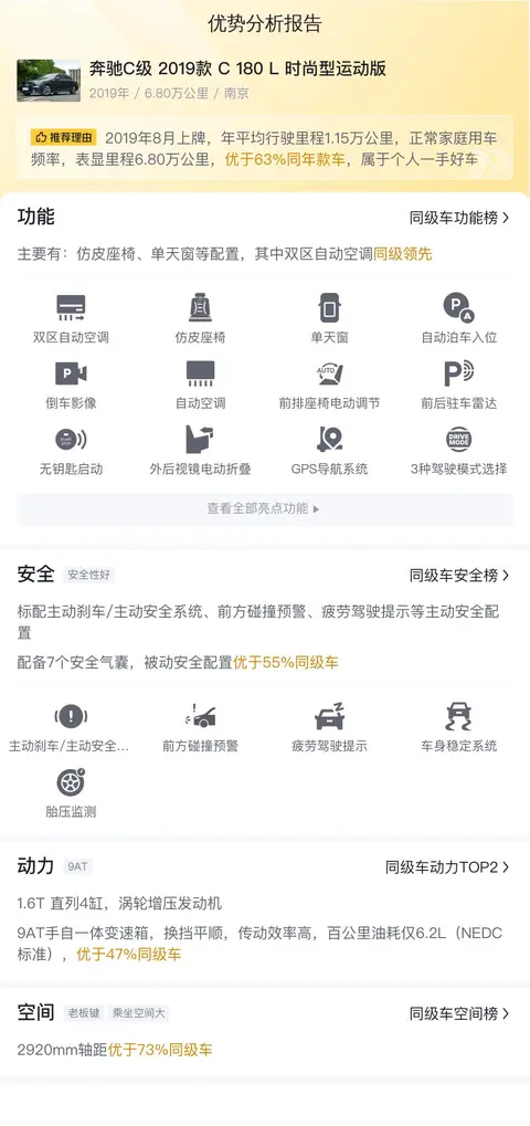 版本:奔驰C级 2019款 C 180 L 时尚型运动版