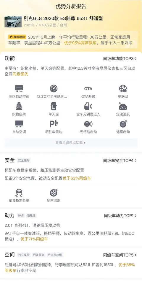 综上所述的新车含税价、用车成本、市场行情、优势分析、同款比价等数据仅供参考。在配置部分,因为二手车非标品,车辆可能会存在配置改装的情况,具体车况信息需要线下结合车辆实际情况进行综合参考。