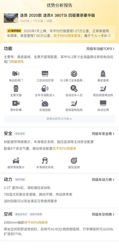 在这里,我们为您提供一个细节——这辆途昂X已行驶了7万公里,这意味着它仍处于相对较新的状态,您可以更加放心地考虑。
