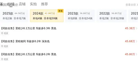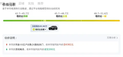 优点:市场行情价是40.07万-48.76万,它的报价则是45.90万,价格相对来说属于比较实惠的了。而且这款车属于去年的新车,整体技术和配置都比较新,且行驶里程仅仅5万公里,所以整体性能都保持的比较好。这个车子的操控和舒适度都属于比较好的,空间也大,家用可以考虑。