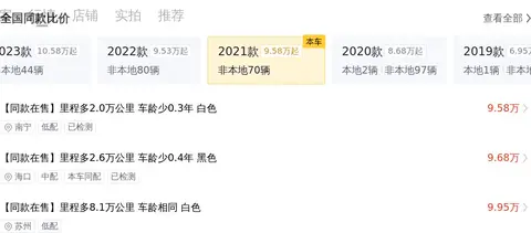 RAV4荣放 2021款 2.0L CVT两驱风尚版,新车含税价为21.45万,现在的二手车报价是12.98万,2021年2月首次上牌,在此期间过户2次。