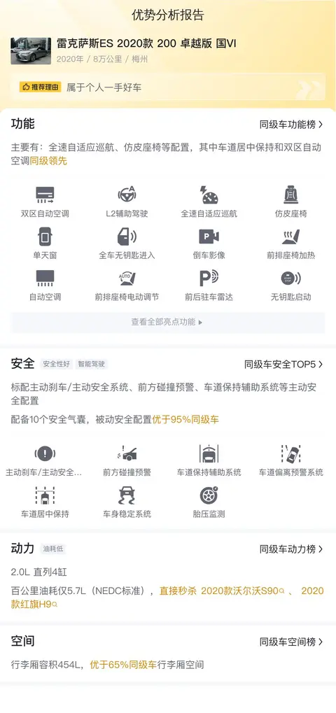 综上所述的新车含税价、用车成本、市场行情、优势分析、同款比价等数据仅供参考。在配置部分,因为二手车非标品,车辆可能会存在配置改装的情况,具体车况信息需要线下结合车辆实际情况进行综合参考。
