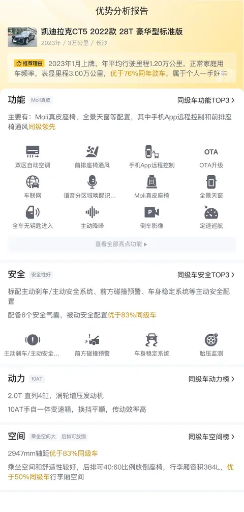 综上所述的新车含税价、用车成本、市场行情、优势分析、同款比价等数据仅供参考。在配置部分,因为二手车非标品,车辆可能会存在配置改装的情况,具体车况信息需要线下结合车辆实际情况进行综合参考。